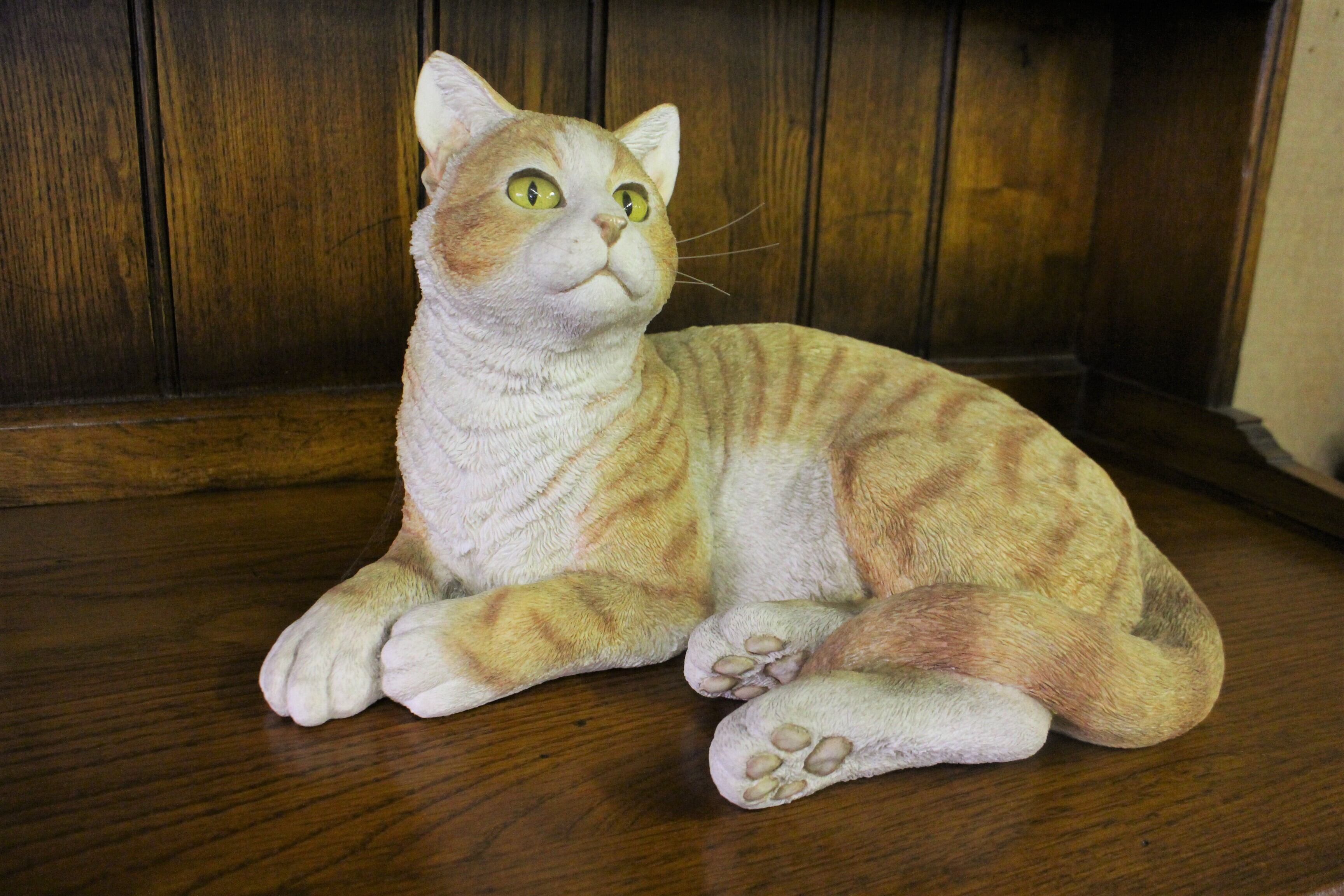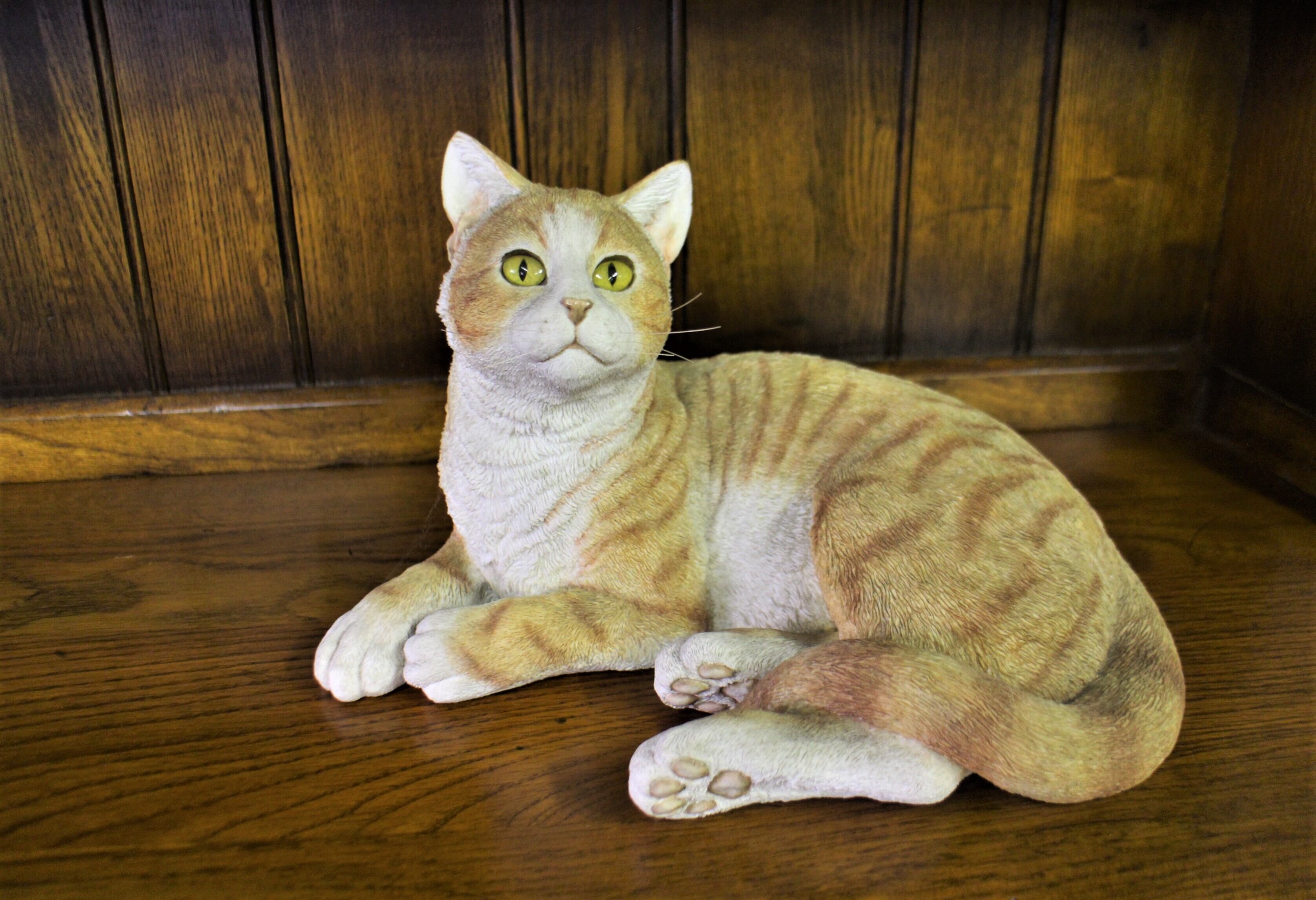 ハンドクラフトで作られたこちらの商品は実物の猫と見間違う様な置物です。